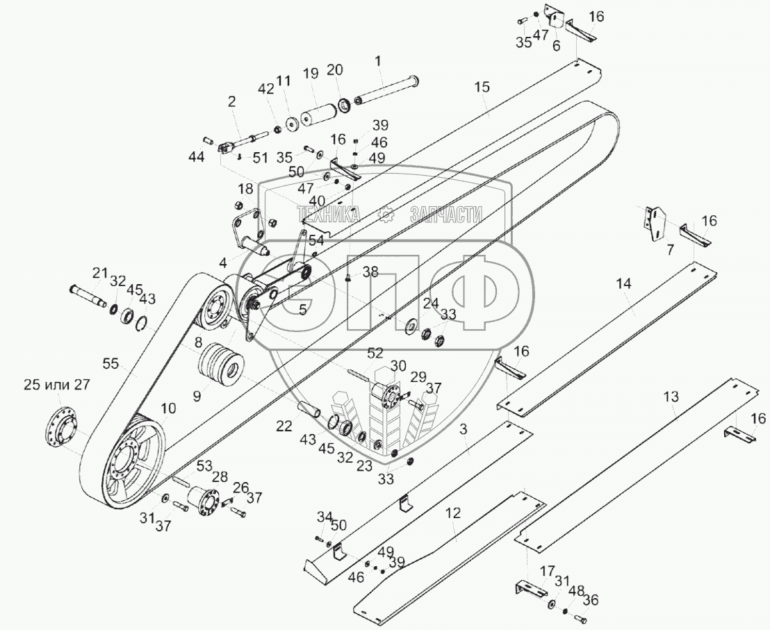 Каталог запасных частей к технике: Гомсельмаш КВК-8060. Привод измельчающего барабана КВК 0130000А