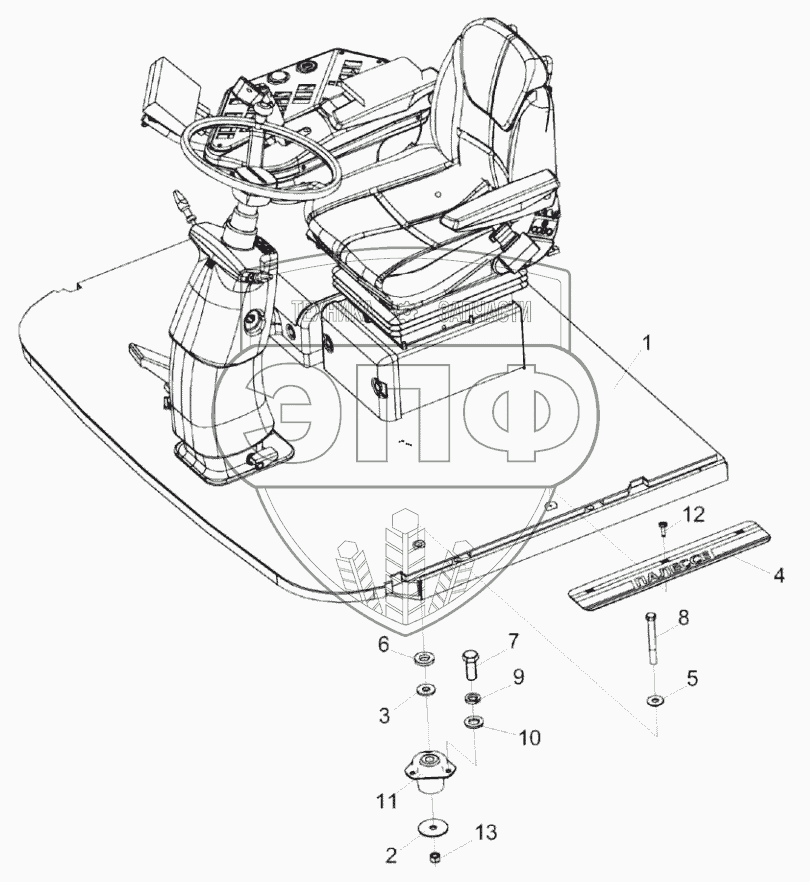 Каталог запасных частей к технике: Гомсельмаш КВК-8060. Установка площадки управления КВК 0129200А