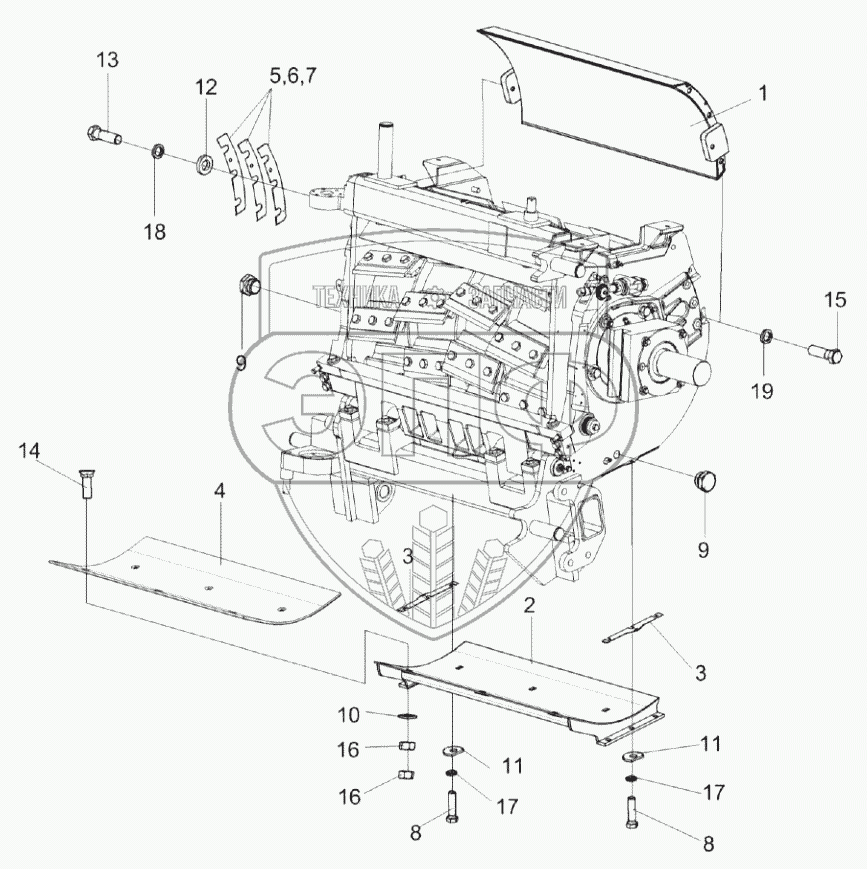 Каталог запасных частей к технике: Гомсельмаш КВК-8060. Установка поддона КВК 0115230
