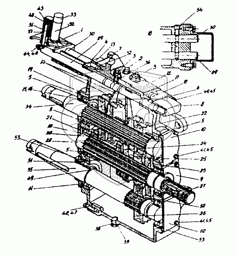 Каталог запасных частей к технике: Гомсельмаш КЗР-10. Коробка четырехскоростная (КЗР0114000Б)