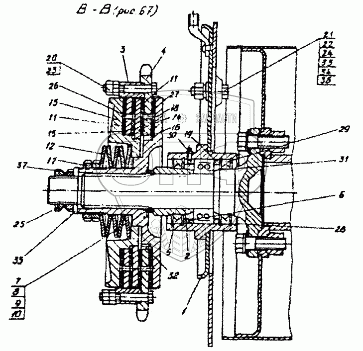 Каталог запасных частей к технике: Гомсельмаш КЗР-10. Жатка. Муфта фрикционная (КЗР0301000,КЗР0313000)