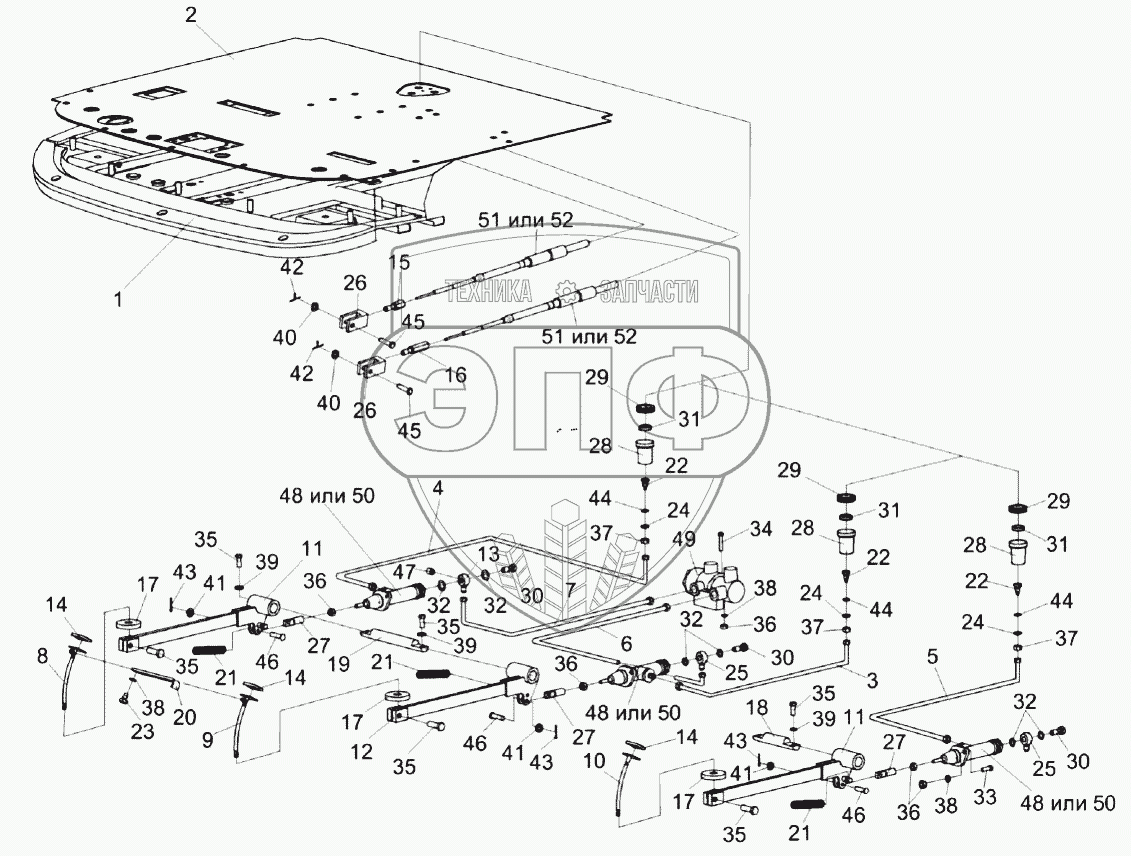 Каталог запасных частей к технике: Гомсельмаш КЗС-1218А-1. Рычаги и трубопроводы площадки управления