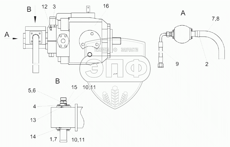Каталог запасных частей к технике: Гомсельмаш КЗС-1218А-1. Установка гидронасосов КЗК-12-0601610