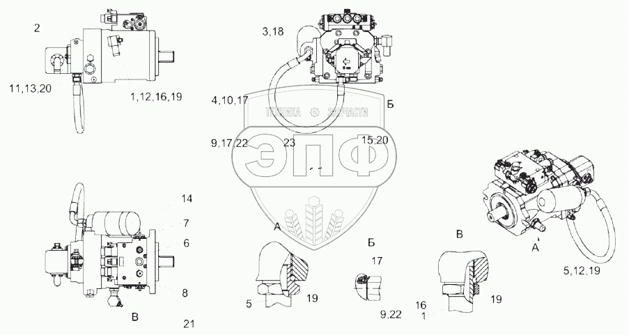 Каталог запасных частей к технике: Гомсельмаш КЗС-1624-1. Гидронасос двухсекционный КЗК-1420-0601100