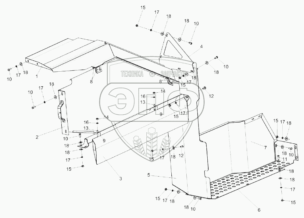 Каталог запасных частей к технике: Гомсельмаш КЗС-1624-1. Установка ограждения КЗК-1420-0100100