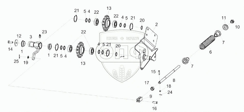 Каталог запасных частей к технике: Гомсельмаш КЗС-2124КР. Механизм натяжения КЗК-14-0221230А