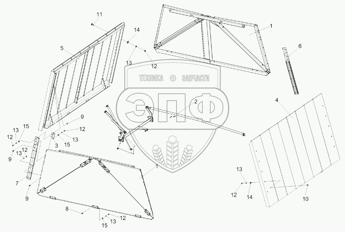 Каталог запасных частей к технике: Гомсельмаш КЗС-2124КР. Установка крыши бункера КЗК-14-0204000Б