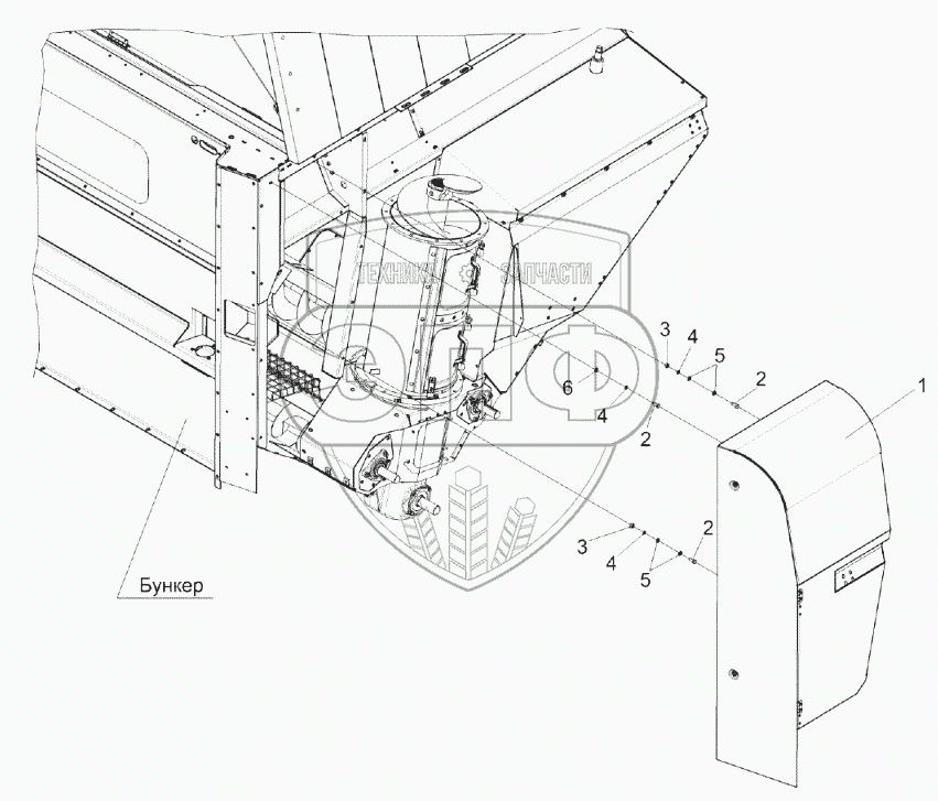 Каталог запасных частей к технике: Гомсельмаш КЗС-2124КР. Установка шкафа электрического КЗК-14-0116000