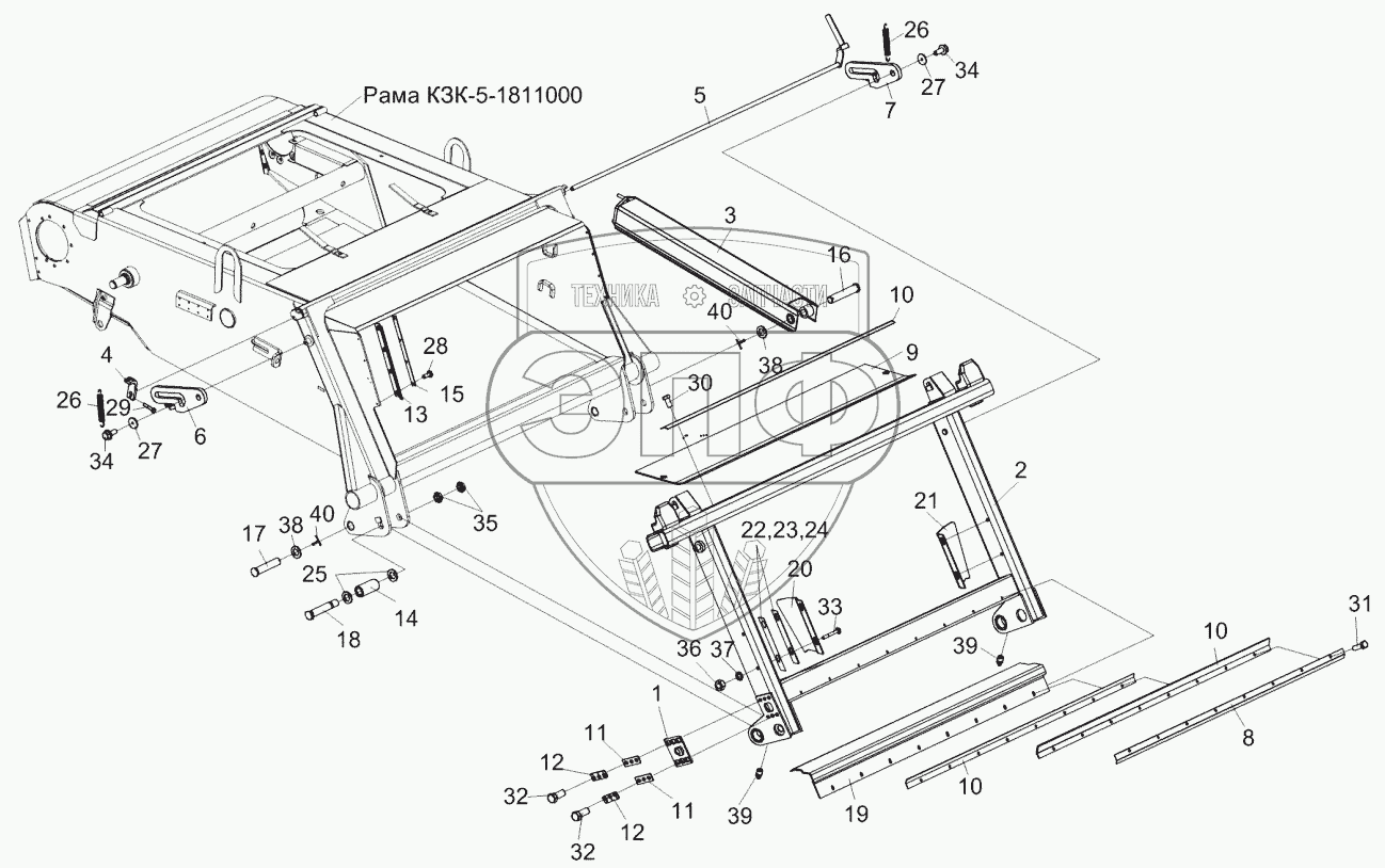 Каталог запасных частей к технике: Гомсельмаш КЗС-575. Установка рамки переходной КЗК-5-1818000