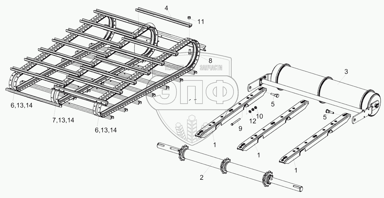 Каталог запасных частей к технике: Гомсельмаш КЗС-575. Установка транспортера КЗК-5-1807000
