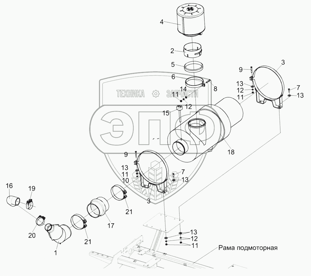 Каталог запасных частей к технике: Гомсельмаш КЗС-575. Установка воздухоочистителя КЗК-5-4-0106080