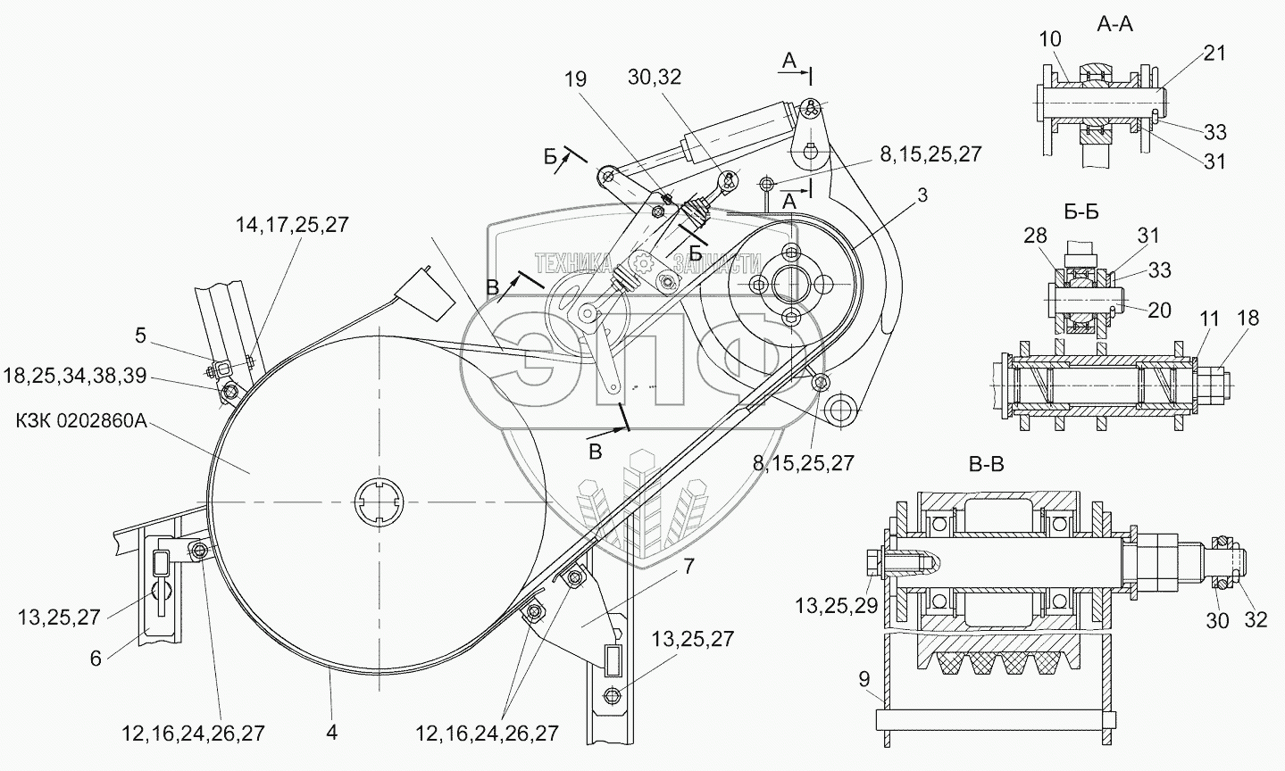Каталог запасных частей к технике: Гомсельмаш КЗС-7. Привод главного контрпривода КЗК 0220000А