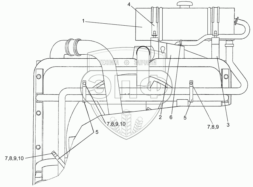 Каталог запасных частей к технике: Гомсельмаш КЗС-7. Установка бачка расширительного КЗК 0106590