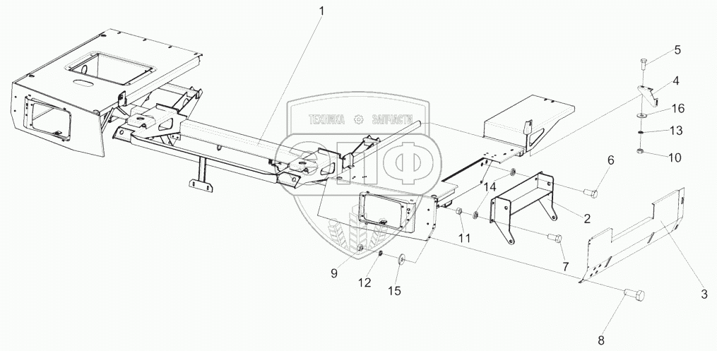 Каталог запасных частей к технике: Гомсельмаш КЗС-812. Подрамник КЗК-8-0121000-01