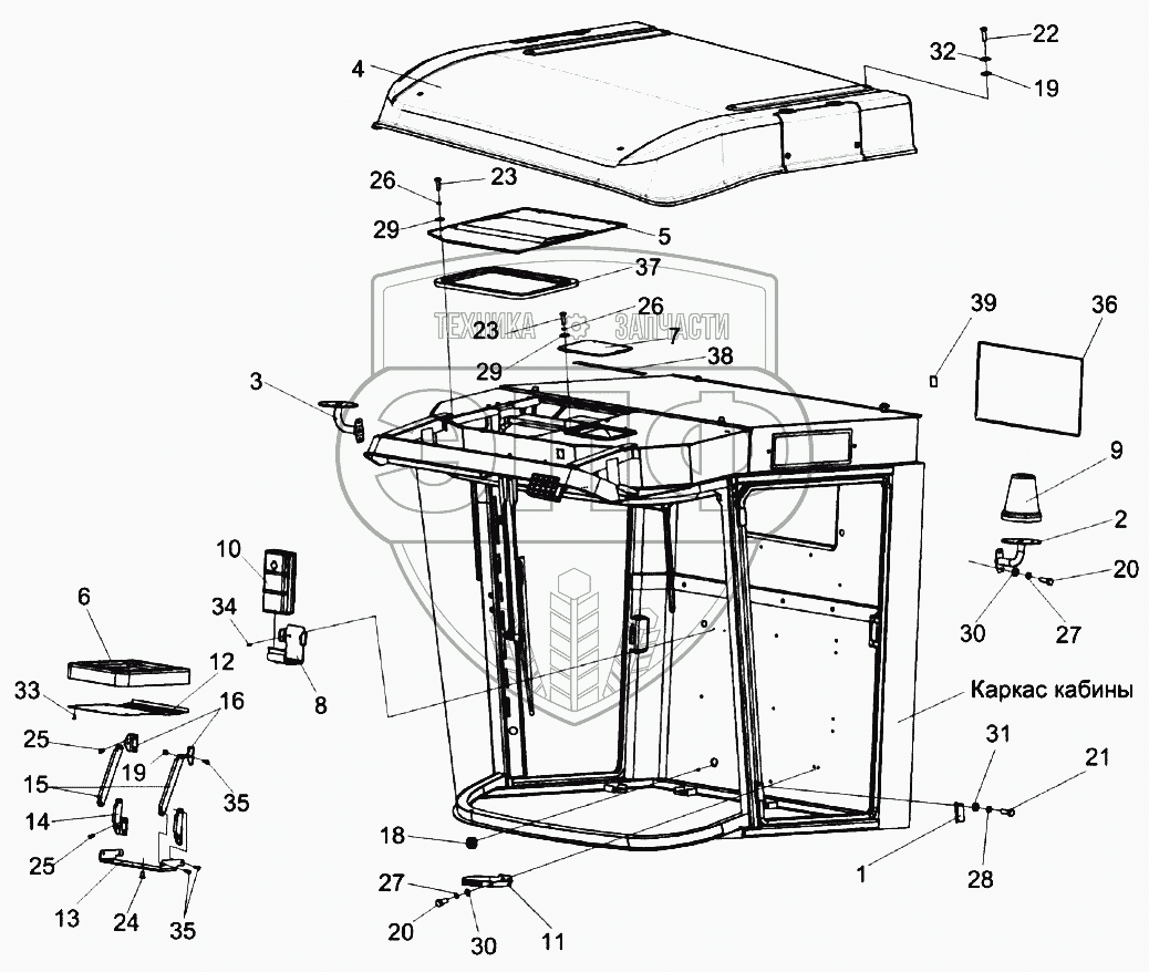 Каталог запасных частей к технике: Гомсельмаш KЗС-812. Кабина КЗК-12-0120000-01
