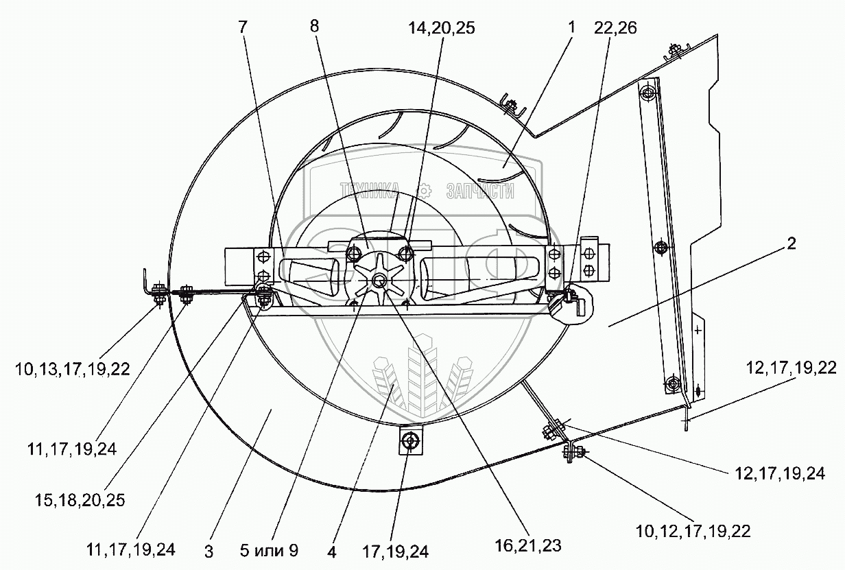 Каталог запасных частей к технике: Гомсельмаш KЗС-812. Вентилятор КЗК 0217000Б-01