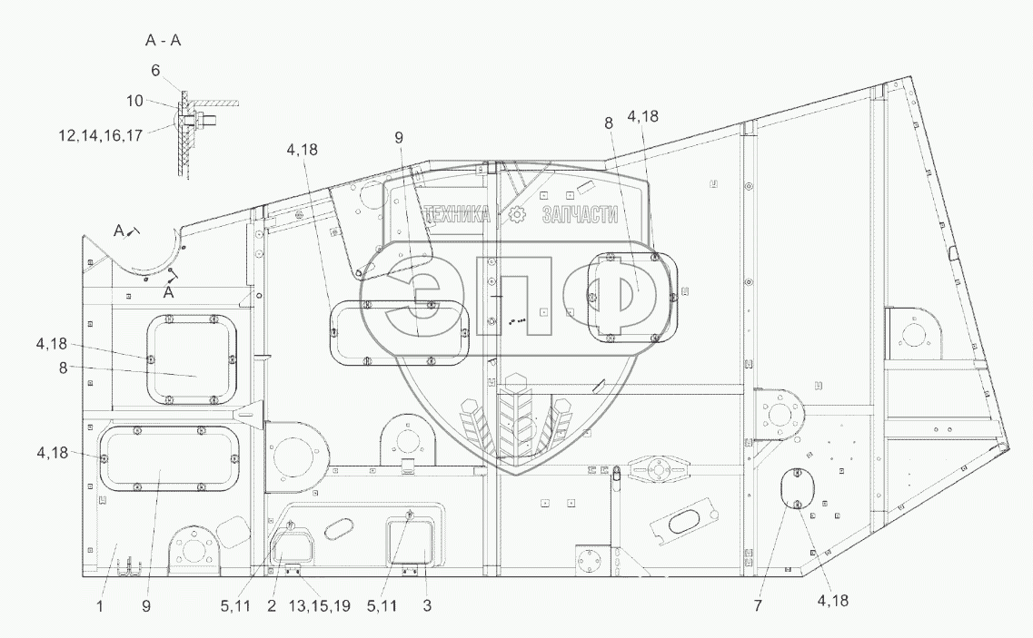 Каталог запасных частей к технике: Гомсельмаш KЗС-812. Боковина левая КЗК-8К-0202050