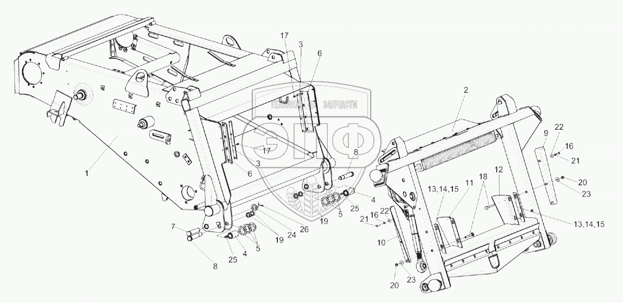 Каталог запасных частей к технике: Гомсельмаш KЗС-812. Установка рамки переходной КЗК 1780000А