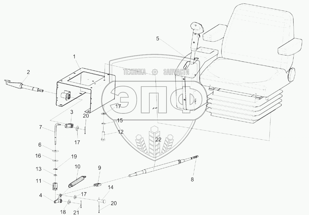 Каталог запасных частей к технике: Гомсельмаш KЗС-812. Установка сиденья КЗК-12-0119290Б