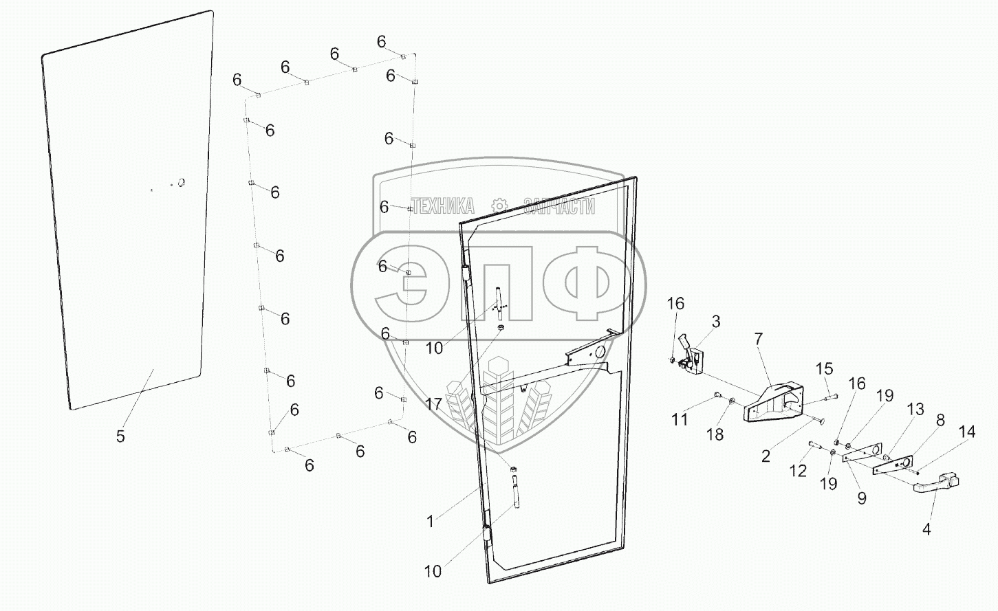 Каталог запасных частей к технике: Гомсельмаш KЗС-812. Дверь КЗК-12-0120330