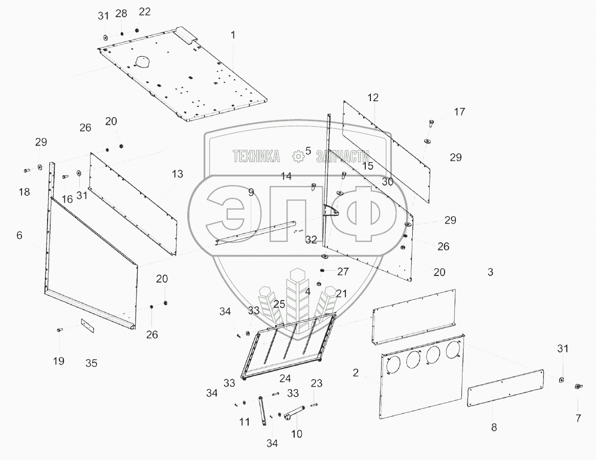 Каталог запасных частей к технике: Гомсельмаш KЗС-812. Капот КЗК-8-4-0228000Э