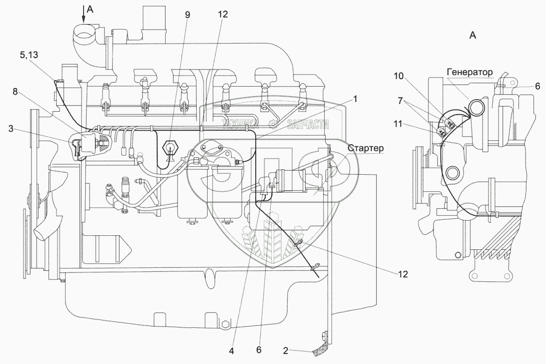Каталог запасных частей к технике: Гомсельмаш КЗС-812С. Электрооборудование двигателя КЗК-812-0106000