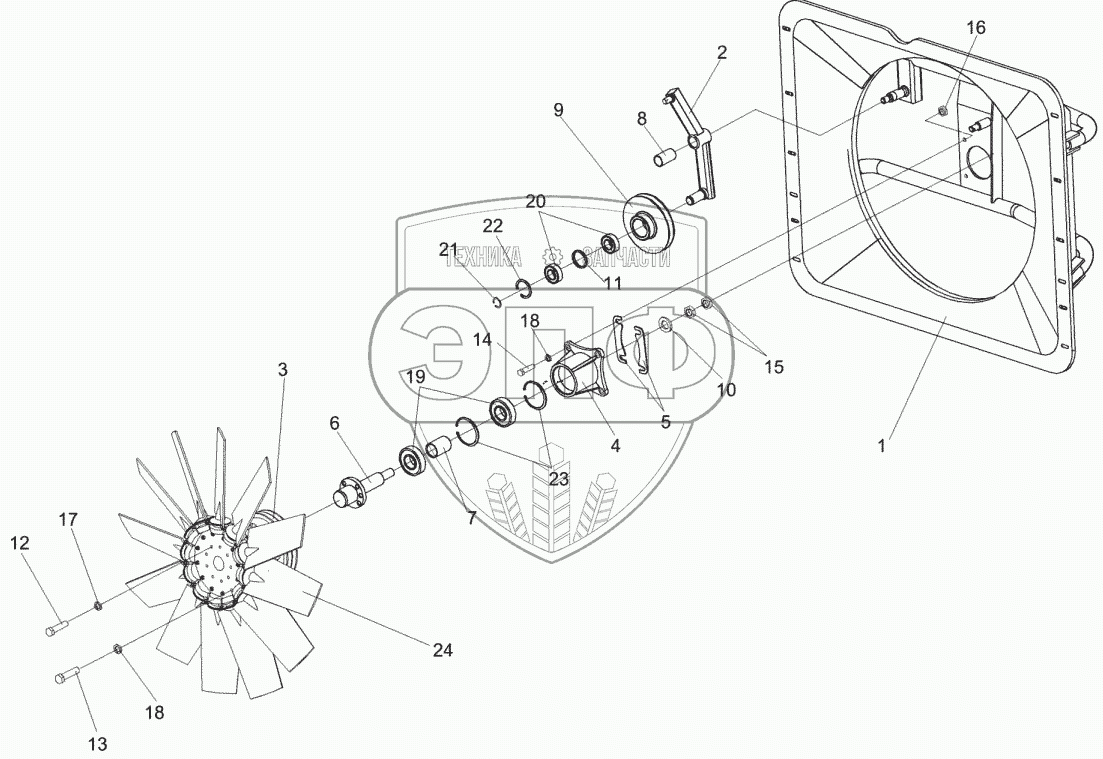 Каталог запасных частей к технике: Гомсельмаш КЗС-812С. Привод вентилятора КЗК 0106020Б