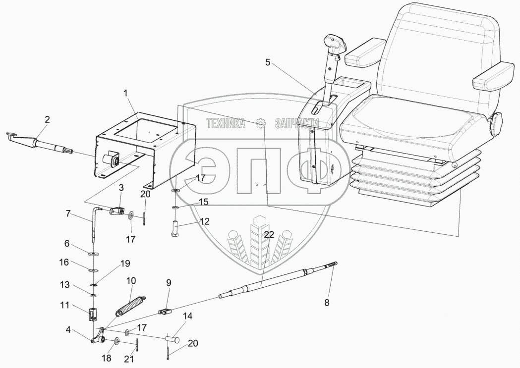 Каталог запасных частей к технике: Гомсельмаш КЗС-812С. Установка сиденья КЗК-12-0119290Б