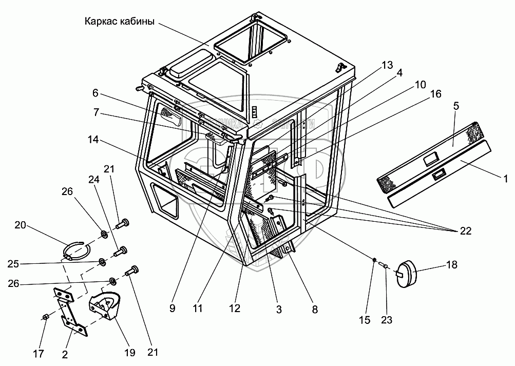 Каталог запасных частей к технике: Гомсельмаш УЭС-280. Кабина УЭС 0200000-01 (обивка)