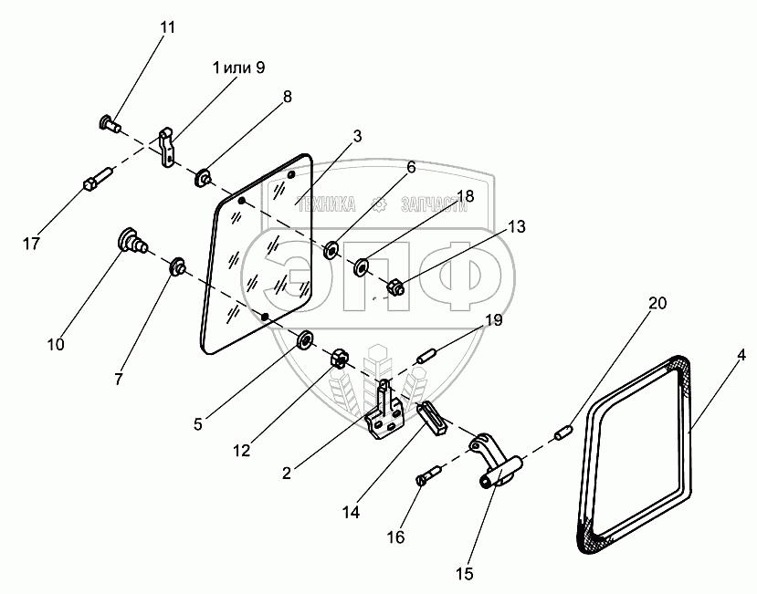 Каталог запасных частей к технике: Гомсельмаш УЭС-280. Установка форточки УЭС 0200320-01