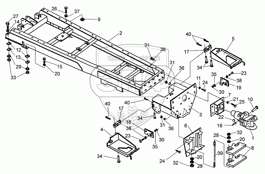 Каталог запасных частей к технике: Гомсельмаш УЭС-280. Установка тягово-сцепного устройства УЭС 0003150