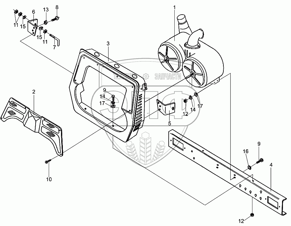 Каталог запасных частей к технике: Гомсельмаш УЭС-280. Воздухоочиститель УЭС-6-1100200-04