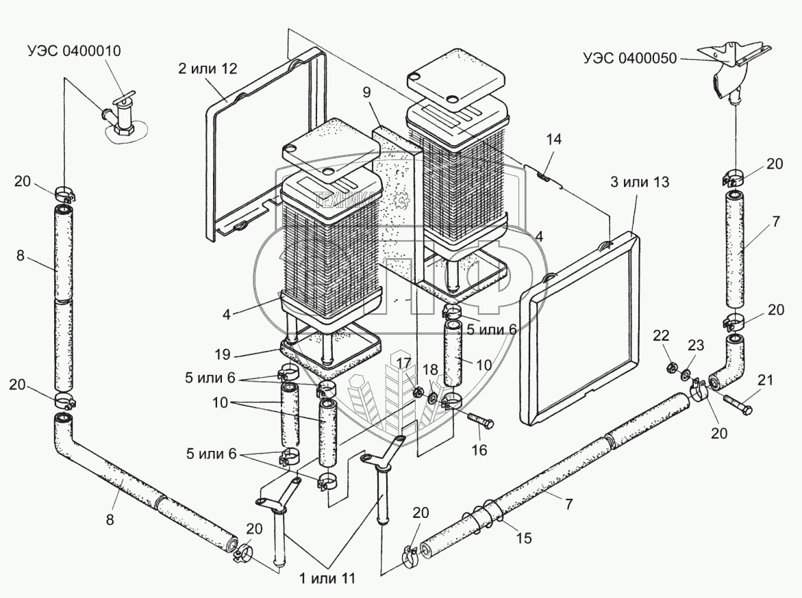 Каталог запасных частей к технике: Гомсельмаш УЭС-2-250А. Блок радиаторов УЭС 0301430