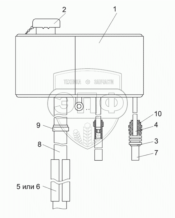 Каталог запасных частей к технике: Гомсельмаш УЭС-2-280А. Бачок расширительный УЭС-6-0400090