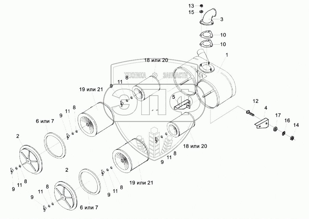 Каталог запасных частей к технике: Гомсельмаш УЭС-2-280А. Воздухоочиститель УЭС-6-0400600А