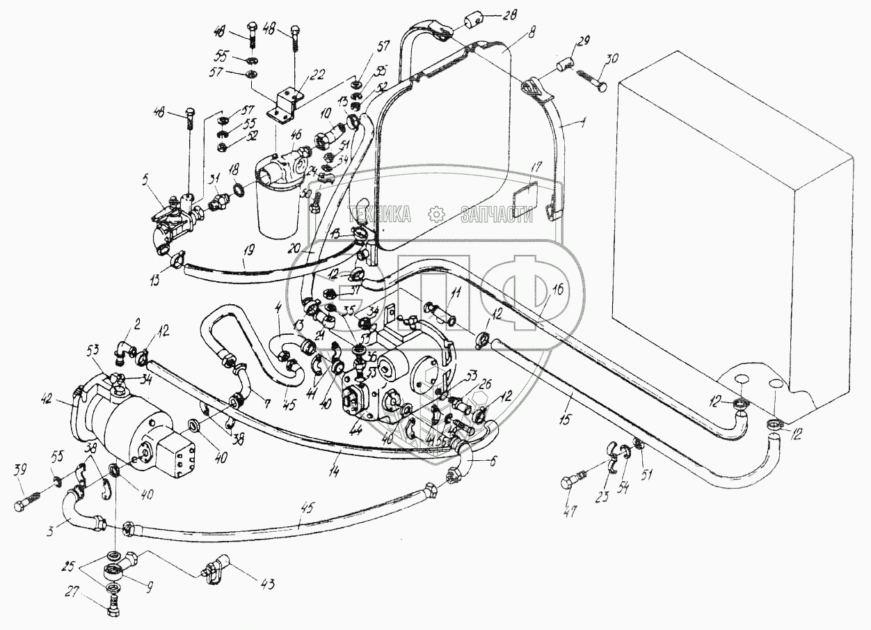 Каталог запасных частей к технике: Гомсельмаш УЭС Полесье-250. Гидросистема привода ходовой части