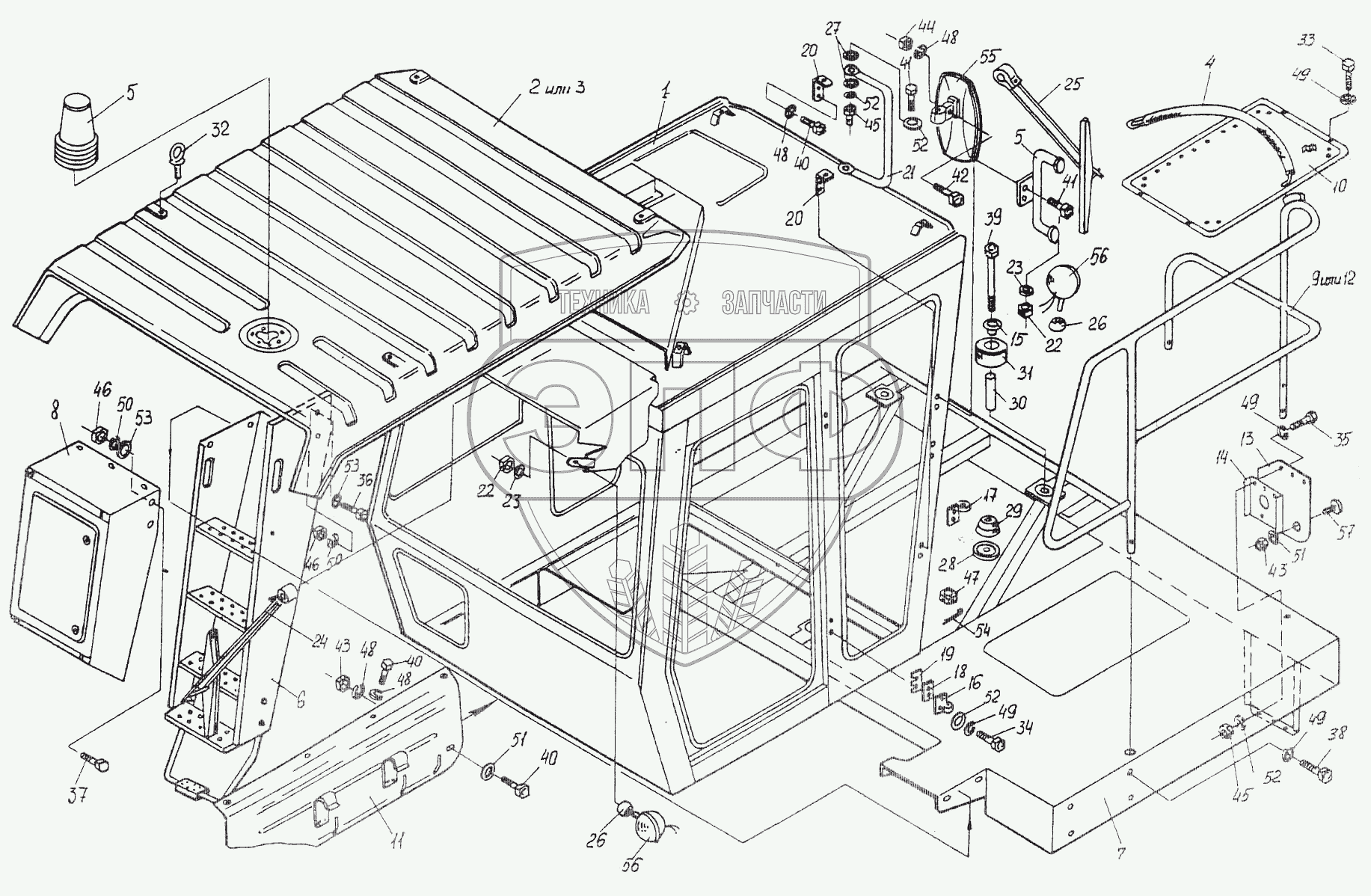 Каталог запасных частей к технике: Гомсельмаш УЭС Полесье-250. Кабина УЭС0200000
