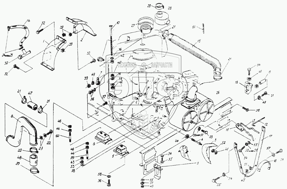 Каталог запасных частей к технике: Гомсельмаш УЭС Полесье-250. Установка дизеля УЭС0400000