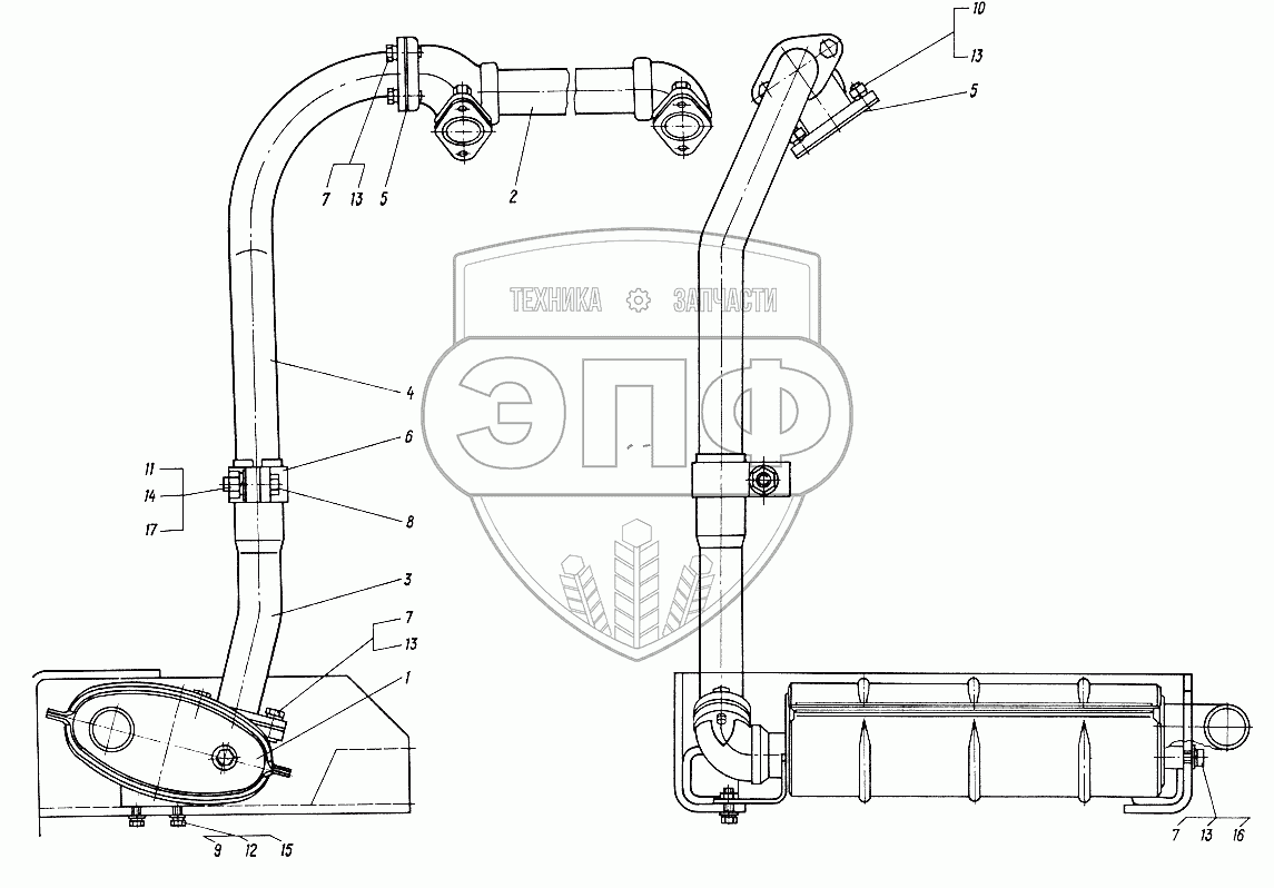 Каталог запасных частей к технике: ХТЗ Т-012. Глушитель с коллектором