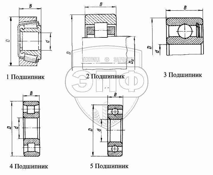 Каталог запасных частей к технике: ХТЗ Т-012. Подшипники