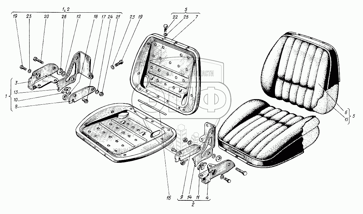 Каталог запасных частей к технике: ХТЗ Т-012. Сиденье