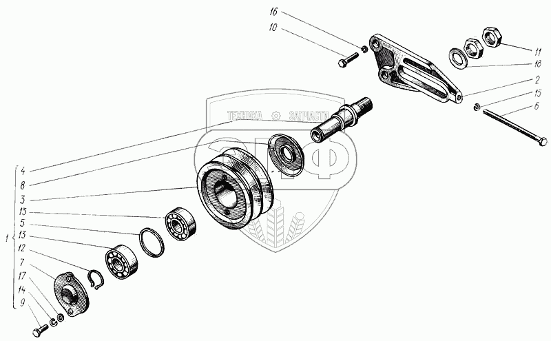 Каталог запасных частей к технике: ХТЗ Т-150. Ролик натяжной