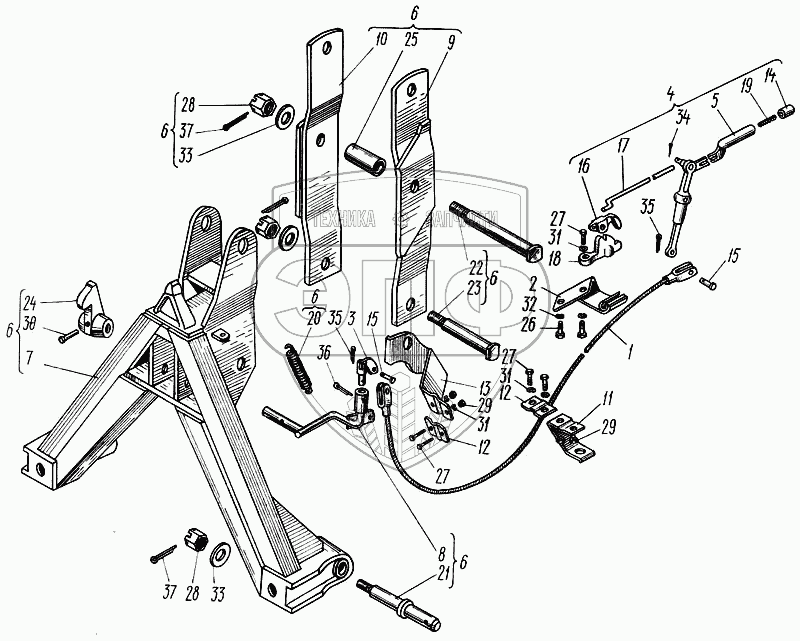Каталог запасных частей к технике: ХТЗ Т-150. Сцепка автоматическая и механизм управления