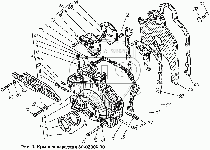 Каталог запасных частей к технике: ХТЗ Т-150К. Крышка передняя 60-02003.00