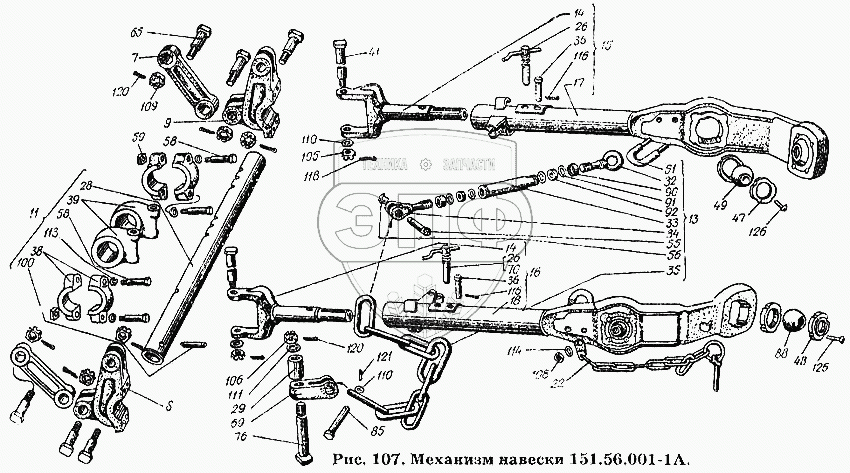 Каталог запасных частей к технике: ХТЗ Т-150К. Механизм навески 151.56.001-1А