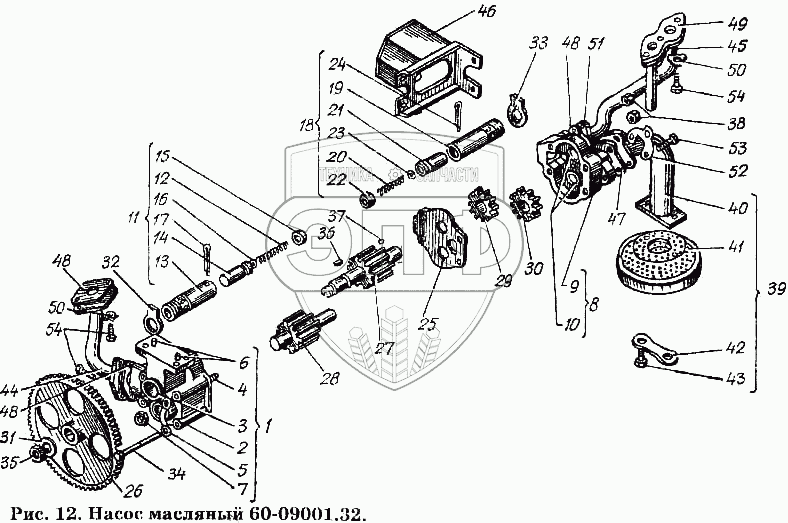 Каталог запасных частей к технике: ХТЗ Т-150К. Насос масляный 60-09001.32