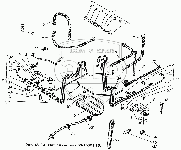Каталог запасных частей к технике: ХТЗ Т-150К. Топливная система 60-15001.10