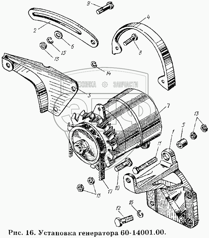 Каталог запасных частей к технике: ХТЗ Т-150К. Установка генератора 60-14001.00