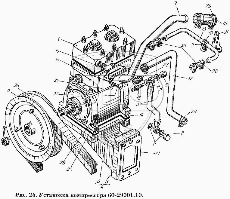 Каталог запасных частей к технике: ХТЗ Т-150К. Установка компрессора 60-29001.10