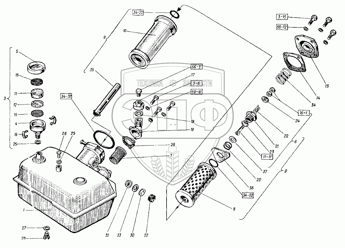 Каталог запасных частей к технике: ХТЗ Т-151К-08. Бак гидравлической системы с фильтром